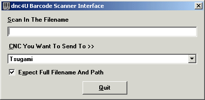Barcode Scanning You can simply use your scanner to scan the barcode off your jobsheet and directly send the file straight to your CNC, no keyboard typing necessary. The scan needs to either see the full filepath or just the filename.